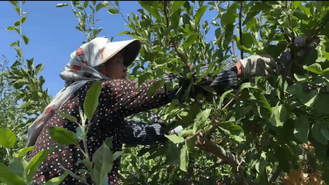 转机始于江苏援伊·苏州工作组的到来。得知当地果农的销售困境后,工作组迅速对接设在苏州的霍尔果斯农产品展销中心,协调苏州的线上线下销售渠道,短短几天,努尔·阿力普的果子就被抢购一空。